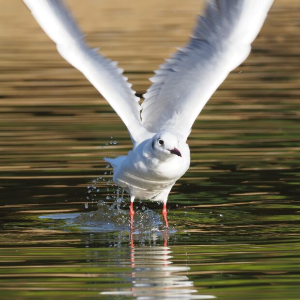 水面の上を飛び、 急降下して餌をとります。 日本全国に生息する小型のカモメで、 東京都の鳥に指定されています。 冬鳥ですが、 春に夏羽のゆりかもめを観察できることがあります。 夏羽は頭が濃い茶色です。