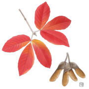 カイコガの仲間。 カイコの原種と言われるクワコに似ていますが、 はねの縁がギザギザになっています。 幼虫はクワではなくカエデの葉を食べます。