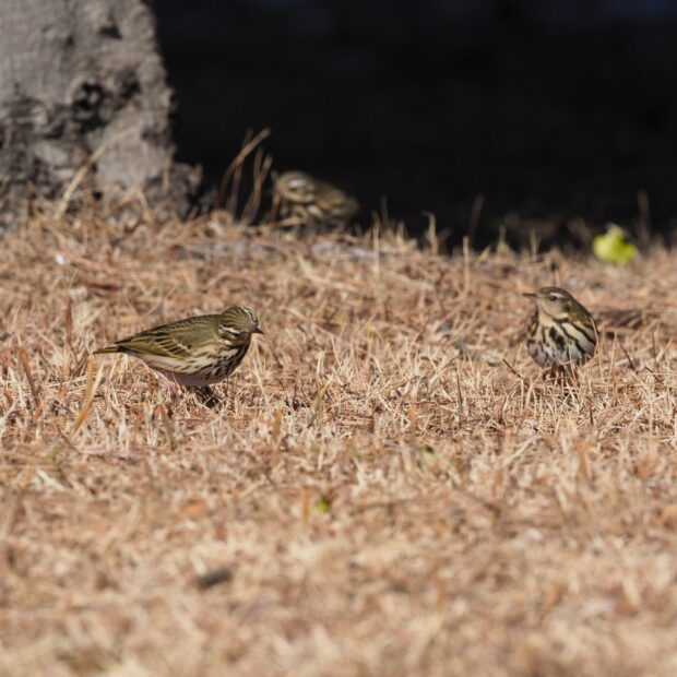 繁殖期以外は小群で行動し、 地上で採食します。 冬には、 明るい松林で見ることが多いです。 尾を上下にゆらしながら地上を歩き回ります。