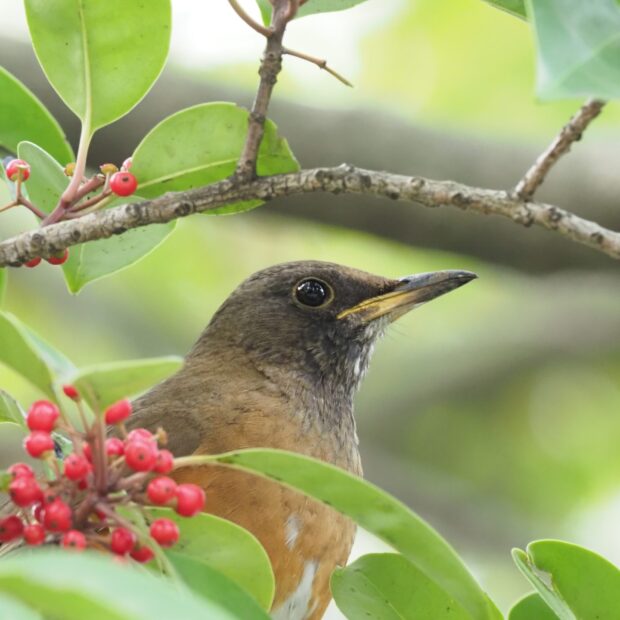 基本的に単独で行動し、 林や藪の中で歩き回ると立ち止まるを繰り返します。 落ち葉をひっくり返したり、 土をくちばしで掘ったりしながらミミズや昆虫類などを探します。