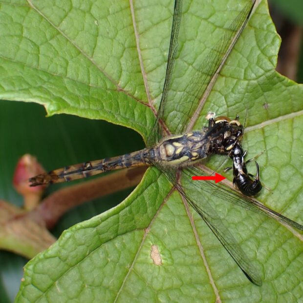 • 羽化してまもないメス。 アキアカネは矢印の黒い線が細くなっていく。