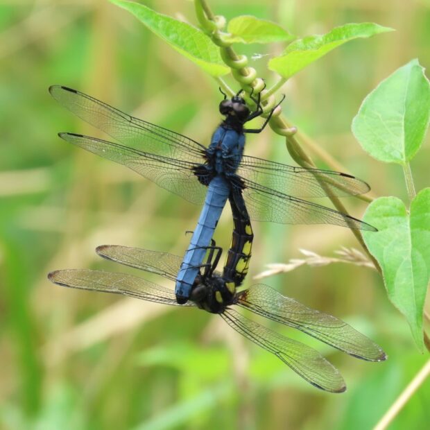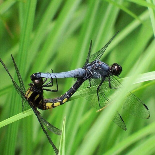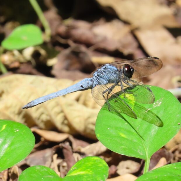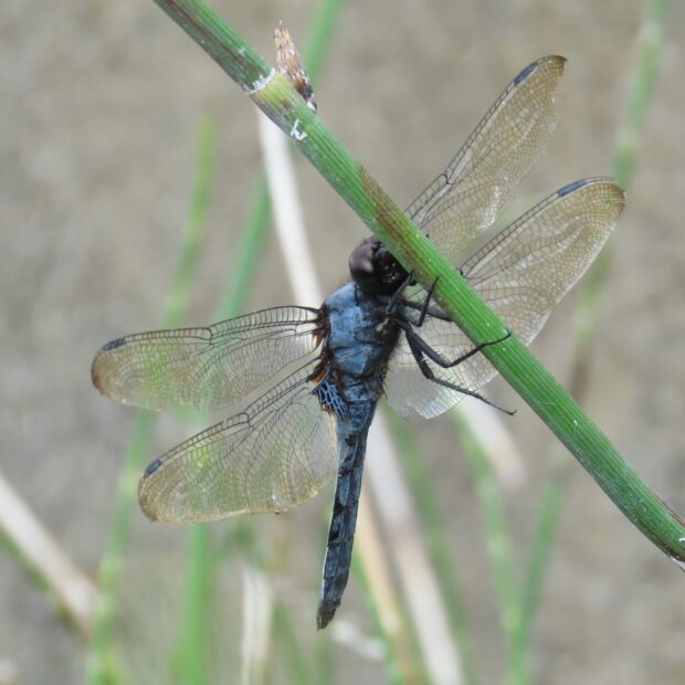 オオシオカラトンボのオスは青みが強く、 眼の色は黒褐色です。