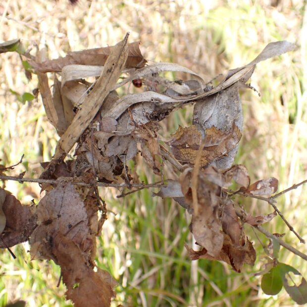 表ばねは黄色地に黒い紋、 はねをたたむと、 枯れ葉のような保護色になるタテハチョウ。 カナムグラが生える明るい草地や公園などで、 普通に見られます。 花を訪れるほか、 樹液や熟れた果実にもやって来ます。 秋型はオレンジ色で、 はねのへりの切れ込みが深くなります。