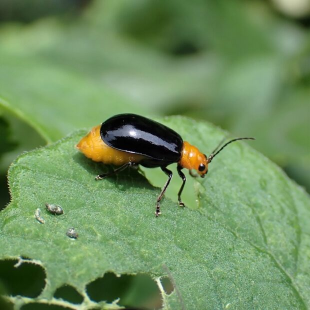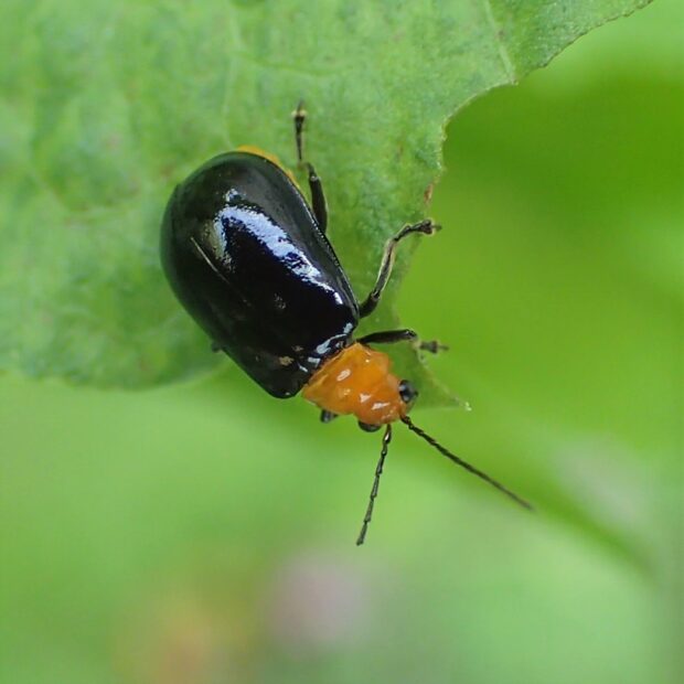 食痕がおもしろいツートンカラーのハムシ