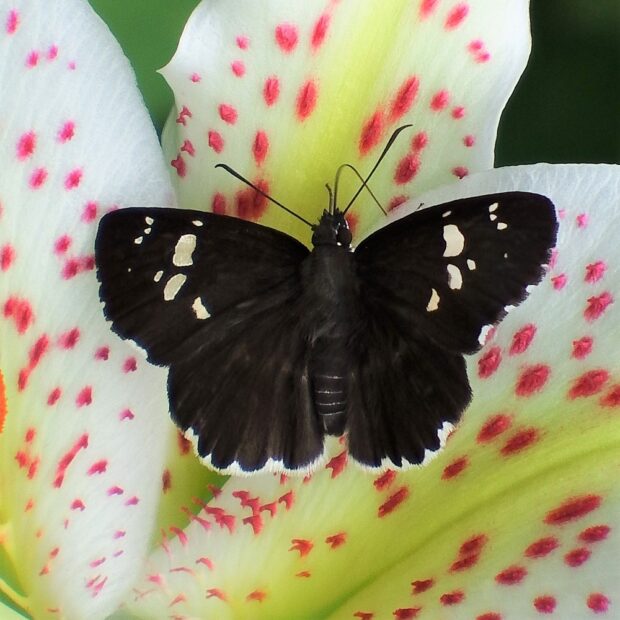 目まぐるしく舞う、 黒い気品のあるチョウ