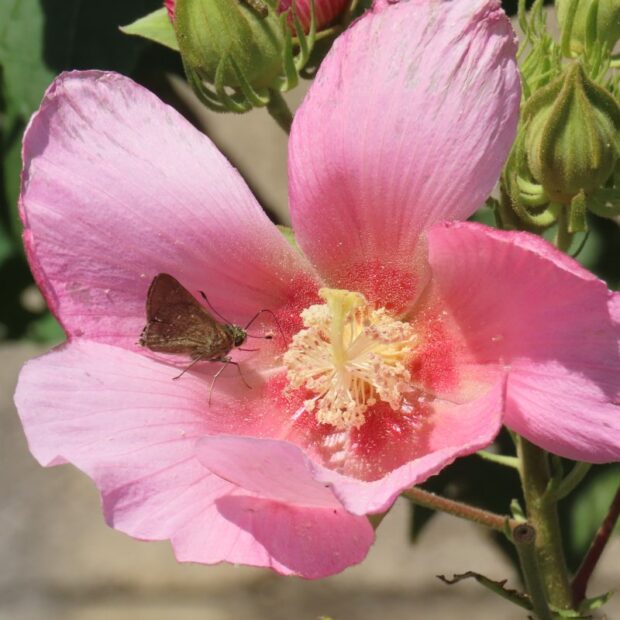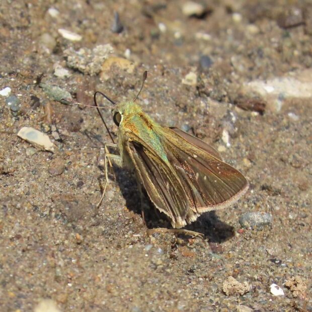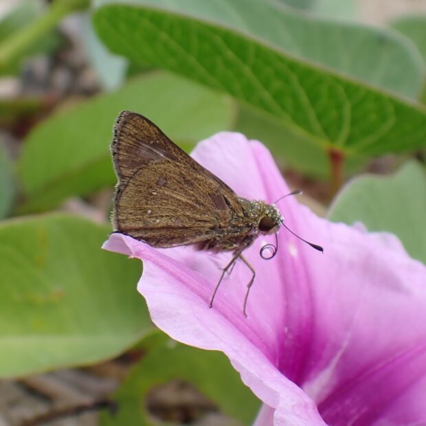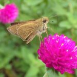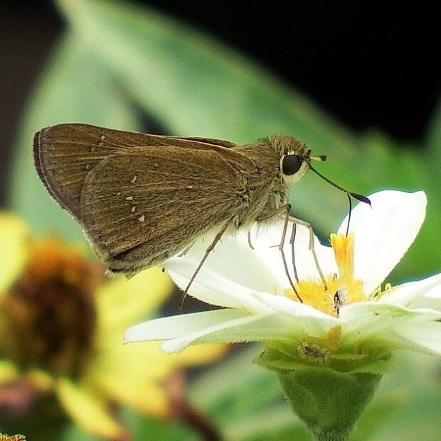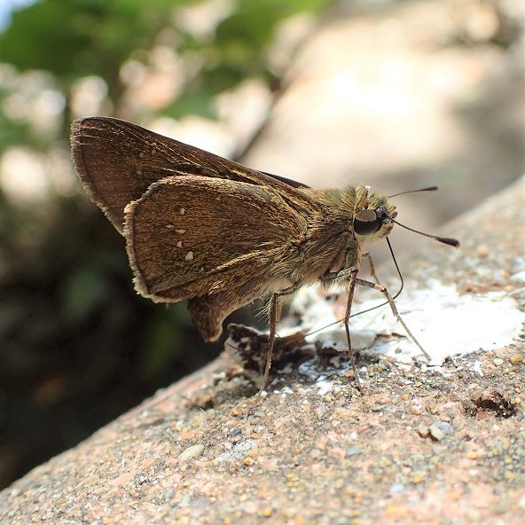 後ばね裏面の白い紋が、 小さく弧をえがくセセリチョウ。 白い紋がないのもいます。 林縁、 公園などで普通に見られ、 夏の終わりから秋にかけて増えてきます。 よく花を訪れ、 獣フンにもやって来ます。