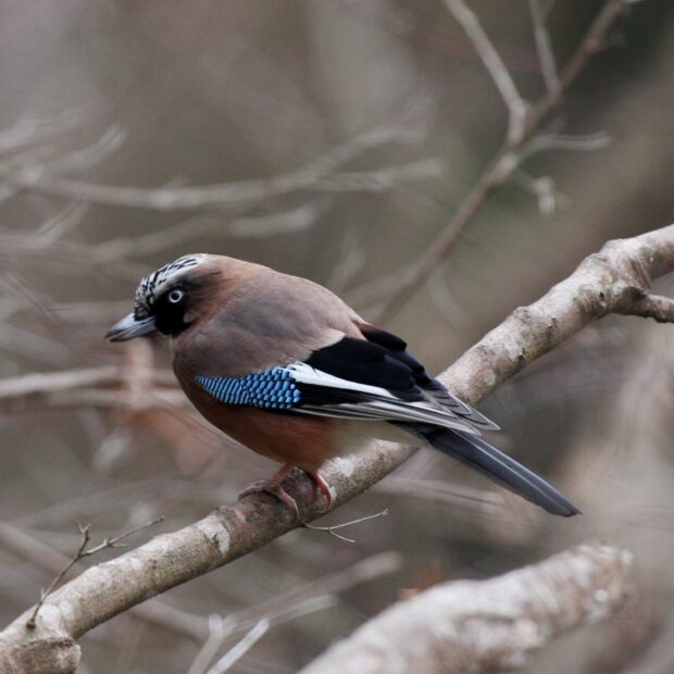 基本的に小群で生活します。 森林の樹上や地面などで、 主にどんぐりなどの木の実を食べますが、 昆虫などを食べることもあります。 どんぐりなどの木のみを隠す習性があります。 濁った声で「ジェー、 ジェー」と鳴き、 他の鳥の鳴き真似をすることもあります。