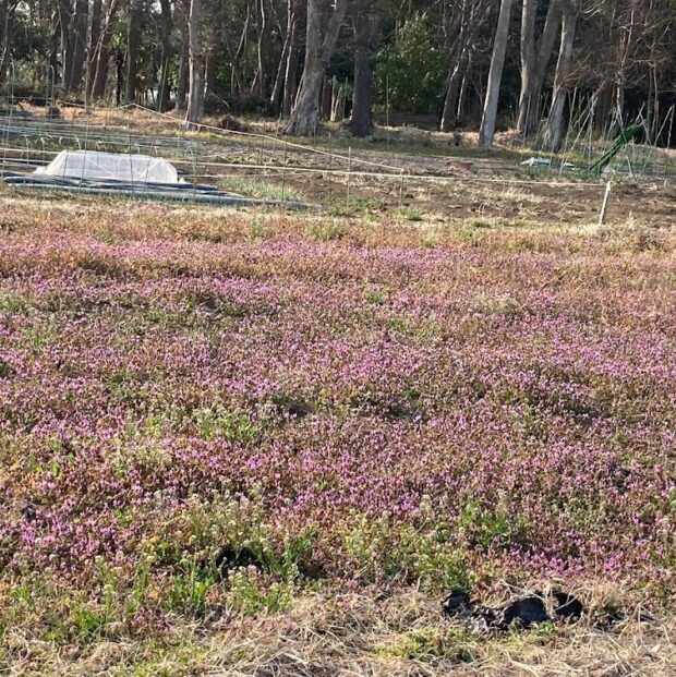 畑の雑草としてよく見られ、 春先から濃いピンクの花が咲きます。