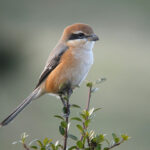留鳥。 ひらけた環境を好み、 長めの尾をくるくる回しながら「ギジギジギジギュンギュン」と鳴きます。 飛び方が浅い波状で低空飛行をし、 枝や杭などにとまります。 カエルやバッタなどを木の枝などに差します(モズのはやにえ)。