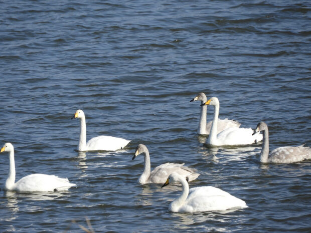 冬鳥。 クチバシの黄色部は、 長めで黄色部が大きく、 黒色部との境の形状は、 とがっています。 調節池では、 毎年小数が越冬します。