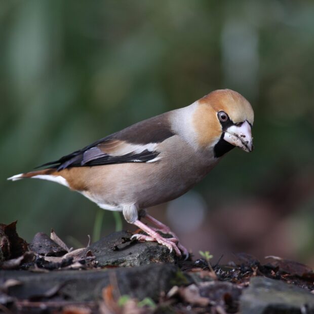 小群か単独で行動します。 木の上や地面で木や草の種子を食べます。 体は全体的に薄茶色で、 目の周りからくちばしと喉は黒色です。 年によって渡来数は大きく変わります。
