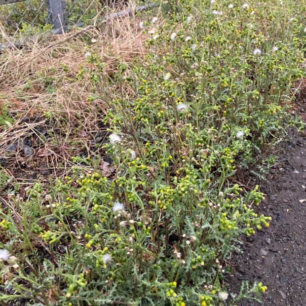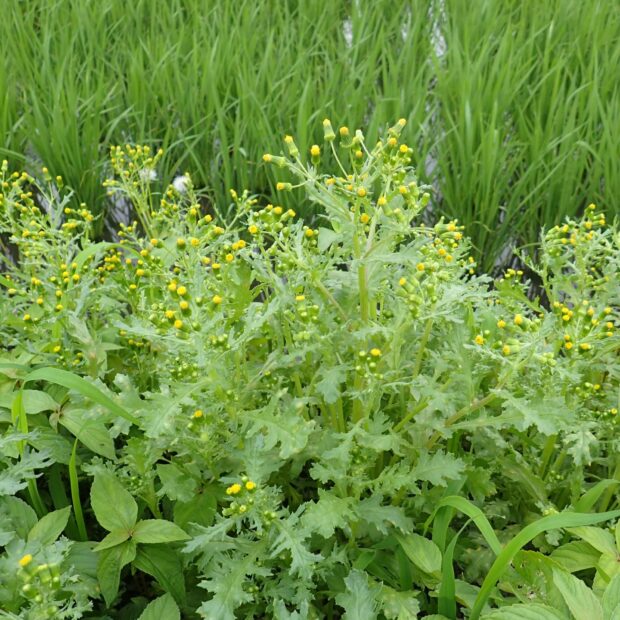 どこにでも見られる野草で葉は野菜の春菊のようです。