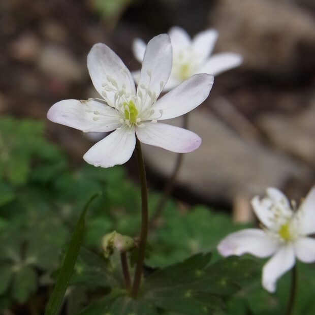 ニリンソウという名前は一本の茎から2輪の花が咲くことからついた名前です。