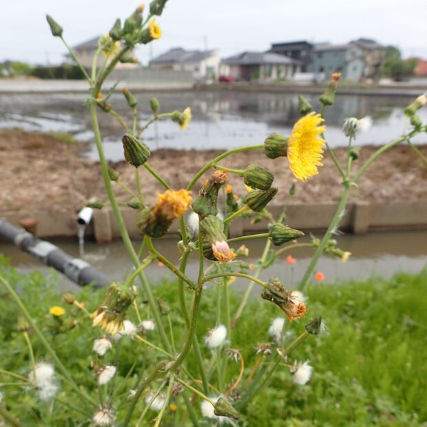 ノゲシに似て、 あらあらしくてトゲがあるので鬼をつけてオニノゲシです。 日本のみならず全世界に広がっている帰化植物です。