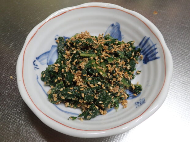 • ゆでて胡麻和えに。 ちょっと堅かったけど食べられた。