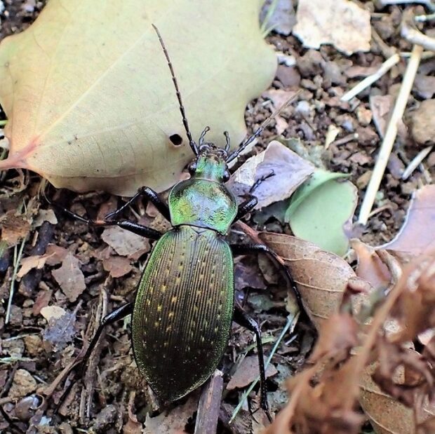 地面を走る美しいオサムシ