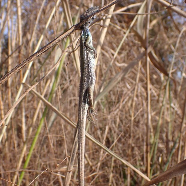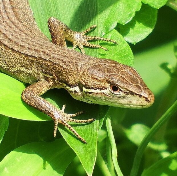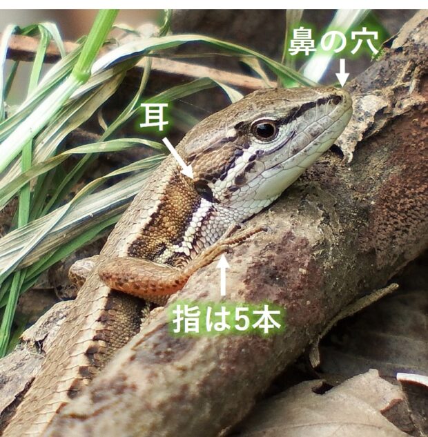 明るい草はら、 やぶなどに生息し、 家の庭で見られることもあります。 主に昼行性で、 日向ぼっこをしている姿もよく見られます。 敵に襲われそうになると、 尾を切って逃げますが、 尾は再生します。 冬は地中に潜り休眠します。