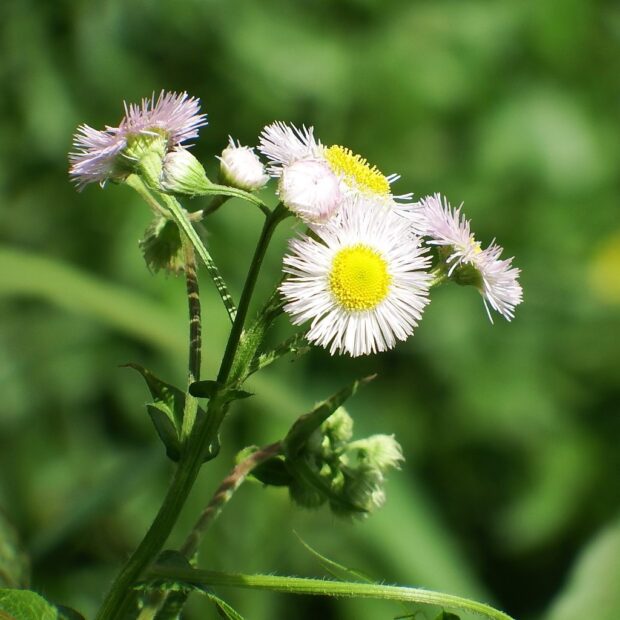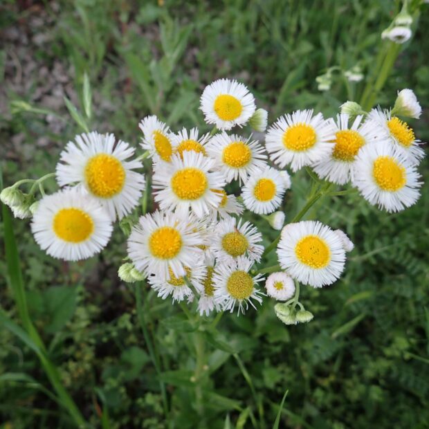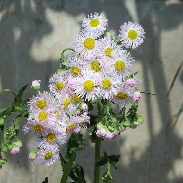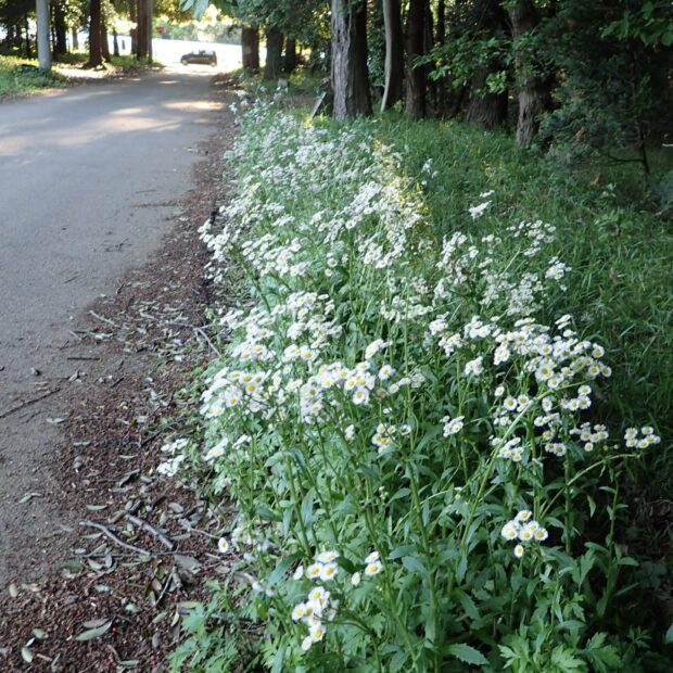 1920年頃観賞用として導入されたものが全国に広がりました。 別名のビンボウギクは手入れされない家の庭に多く見られたこと、 テツドウグサは線路沿いに群生したことなどで呼ばれました。