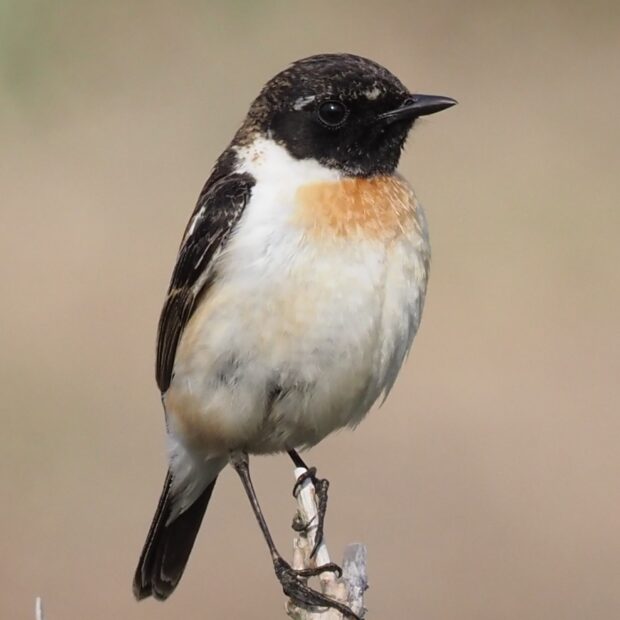 平地や山地の草原や農耕地で見かけることがあります。 平地では秋や春などの渡りの時期に見ることがよくあります。 草原や農耕地の突き出た棒先や草の先にとまって、 尾羽を上下にゆらします。 成長夏羽のオスは喉や顔が黒色で、 メスは全体的に茶色で背面の色が濃いです。