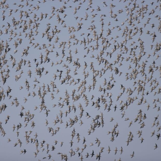 干潟や河口、 砂浜、 水田などに冬になるとやってきます。 基本的に群れで行動し、 大きい群れになると1000羽以上になることもあります。 干潟などではゴカイや貝類を食べます。 一緒に活動していることが多いミユビシギと比べるとくちばしが長いです。 成長の夏羽は腹部が黒くなります。
