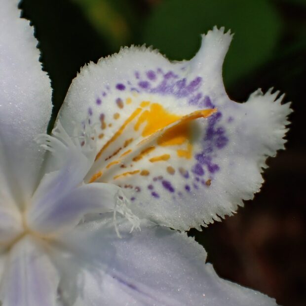 常緑の多年草で中国原産のものが古い時代に渡来して広がったと言われています。 人家に近い湿った林内、 厚く強い光沢のある葉が群生するのがよく見られます。 白い花は暗がりで目立ち、 青や黄色の部分があってきれいです。 日本に生育するものは、 実はなりますが種ができず、 地下茎で増えます。