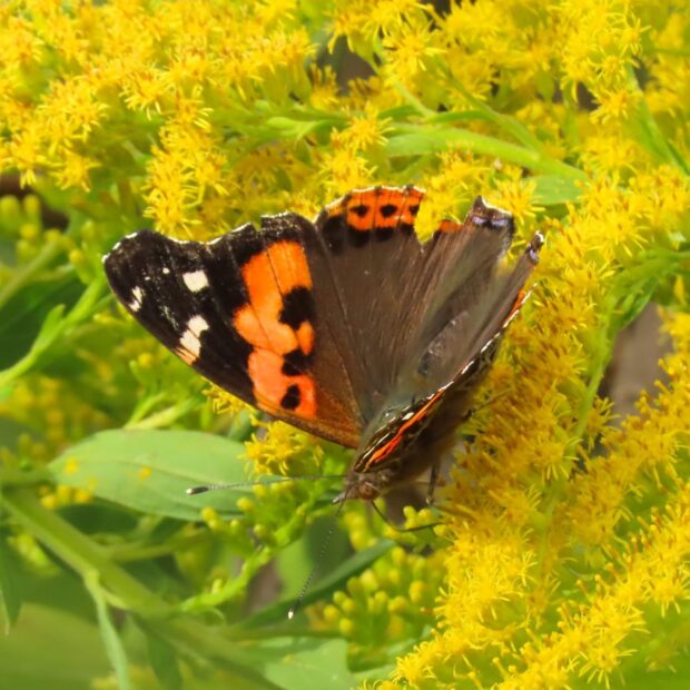 • 秋、 セイタカアワダチソウの花にやって来る。