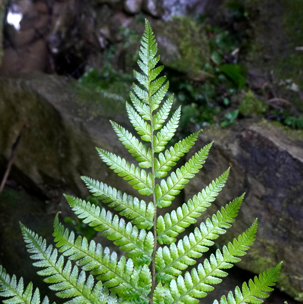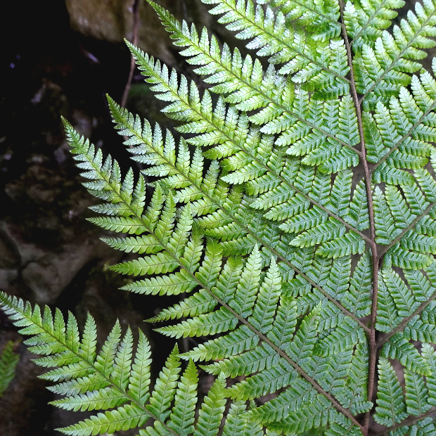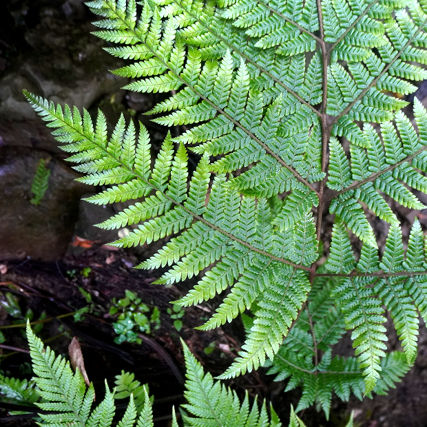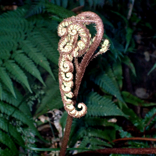 熱帯性の大きなシダ。 葉柄基部に茶色の毛のような鱗片をたくさんつける姿は、 まさに「褐毛」です。 南日本でごく普通に見られますが、 本州では千葉県にまで見られます。 同じオシダ科のイノデとは別のグループのシダです。