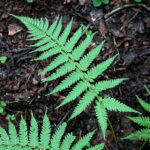 低地から高山まで広く見られるシダ。 葉形は幅広いものから細長いものまでさまざまで、 羽片の切れ込みが鋭く、 葉のやわらかさに反して荒々しい感じがします。 葉裏には小さな胞子のう群が並び、 カマのような形をしています。 葉柄基部には、 中央が栗色でフチが淡色の鱗片が多くつき、 二色のコントラストが際立ちます。