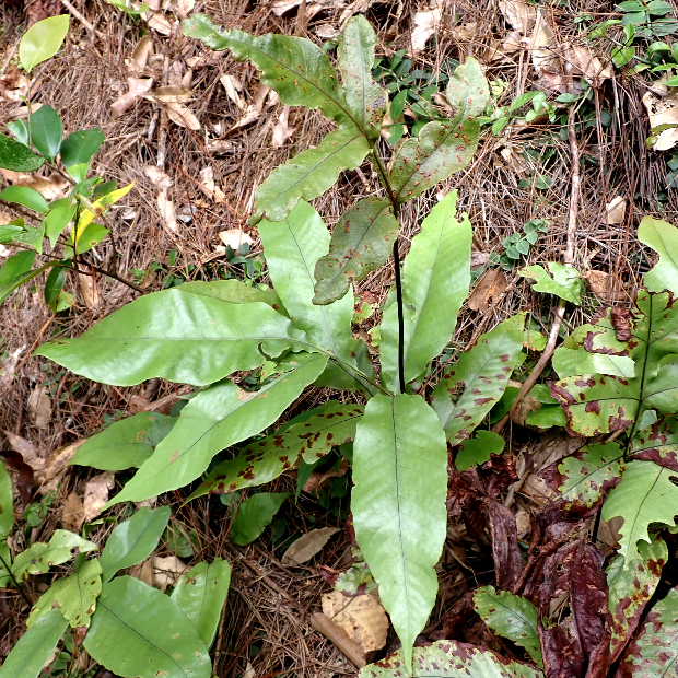 日本では琉球にのみ見られるナナバケシダの仲間のシダ。 株の成長に応じて葉の切れ込み数が0→3→5→と多くなっていきます。 胞子をつける葉は小さく、 立つように出します。 名前のハルランは人名に由来します。