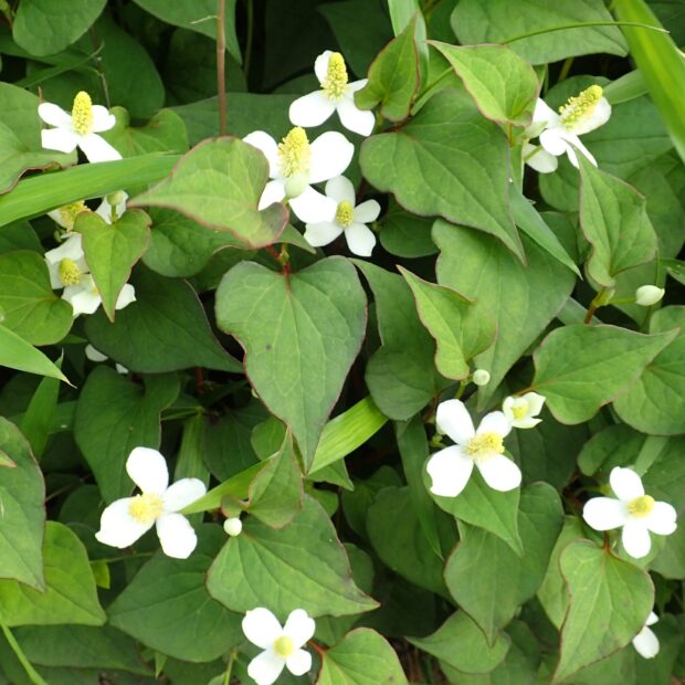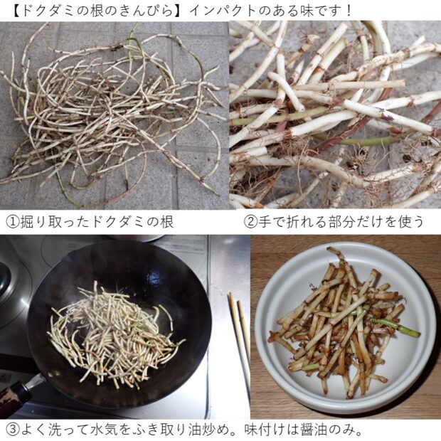 葉はてんぷらなどで、 地上部を乾燥させて「ドクダミ茶」に、 除草で出た根を炒めものなどに利用してはいかがでしょう。