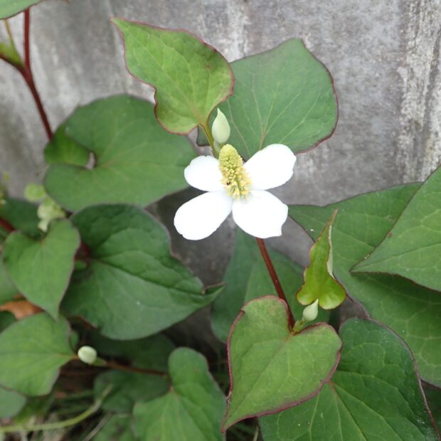 古くから民間薬として利用され、 毒を抑える意味の毒矯め(どくため)が転じドクダミになったと言われます。 別名の十薬(じゅうやく)も、 いろいろな薬効があるからです。