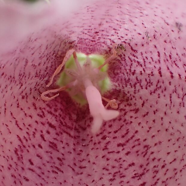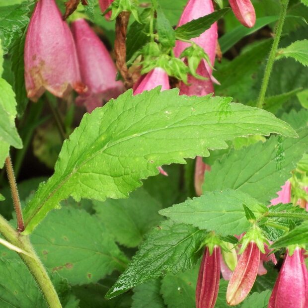 花は赤紫色、 淡紅色、 白色など多様で、 釣り鐘型をしていて先が5つに分かれています。