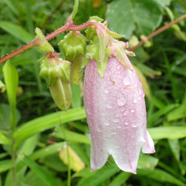 ホタルの飛ぶころ花が咲き、 子どもがホタルを入れて遊んだことから名がついたと言われています。 夜、 ホタルがこの花の中で光るときれいでしょうね。 ですが、 ホタルブクロの花が来るのを待っているのは、 マルハナバチなど、 昼間、 花粉を運んでくれる虫たちです。