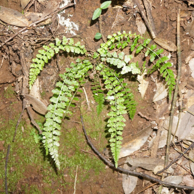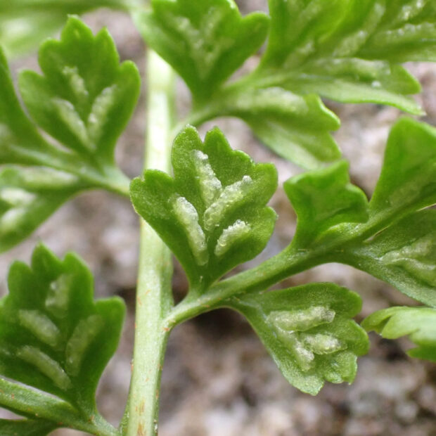 住宅近くの道ばたや石垣の隙間によく生えている身近なシダです。 とはいえ、 小さいので見逃しやすいです。 細長い葉っぱが虎の尾に例えられましたが、 ちょっと似てる気がしませんね…。 チャセンシダ科ではもっとも普通に見られます。