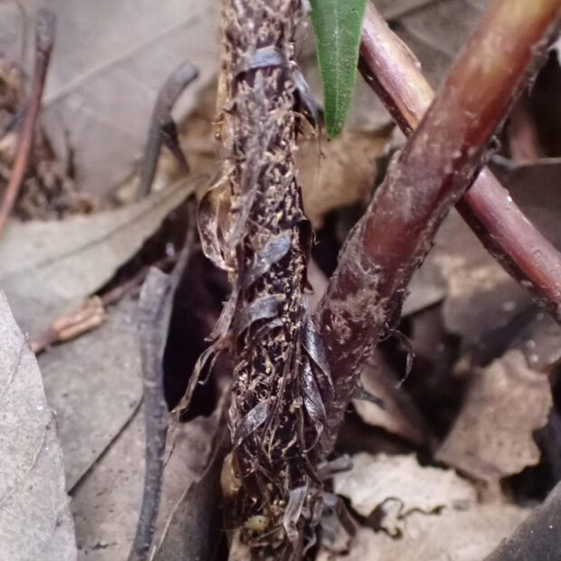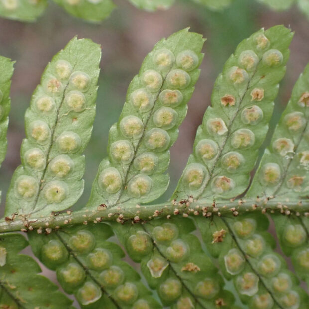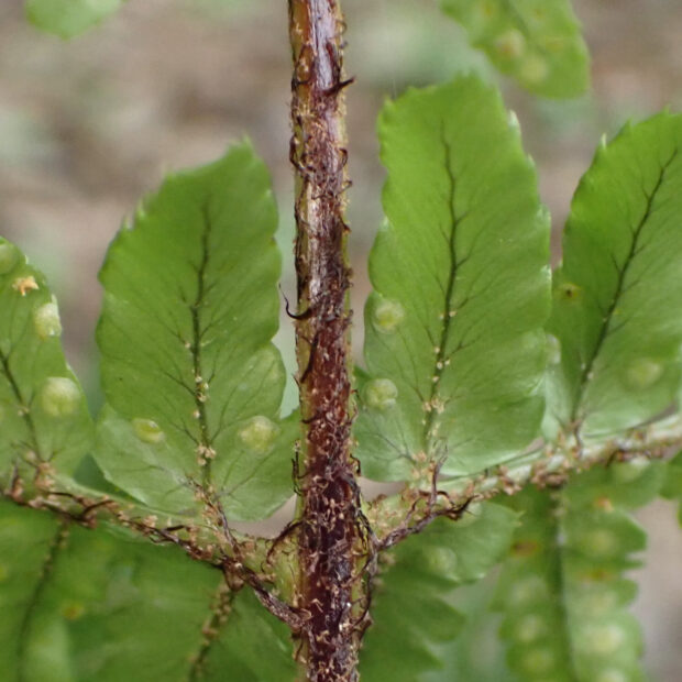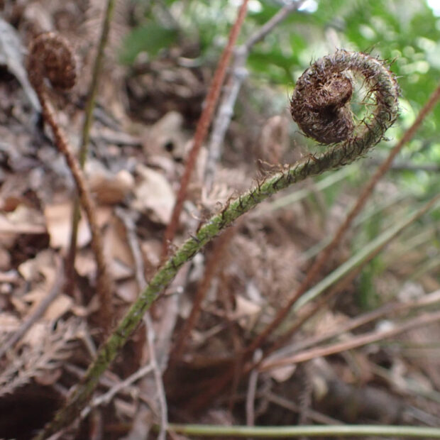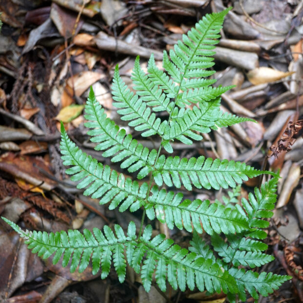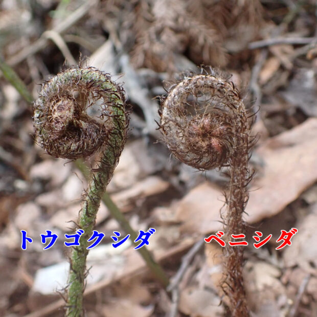 低山でよく見られるシダです。 名前は愛知県の東谷山が由来で、 実際には西日本に多いです。 とはいえ、 東日本でも場所によってはよく見られます。 ベニシダに非常によく似ていますが、 本種の若葉は紅色にならないなどの違いがあります。