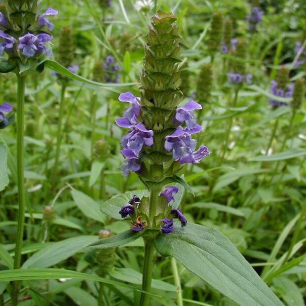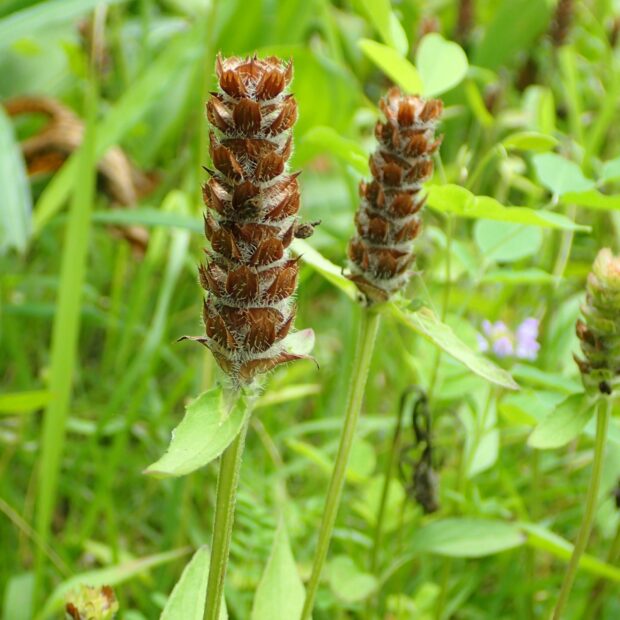 真夏に花が終わると、 花穂は褐色に変化して枯れたように見えることから、 これを夏枯草(カコソウ)と言い、 古くから漢方薬として利尿などに用いてきました。