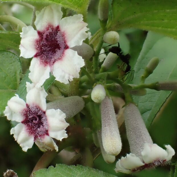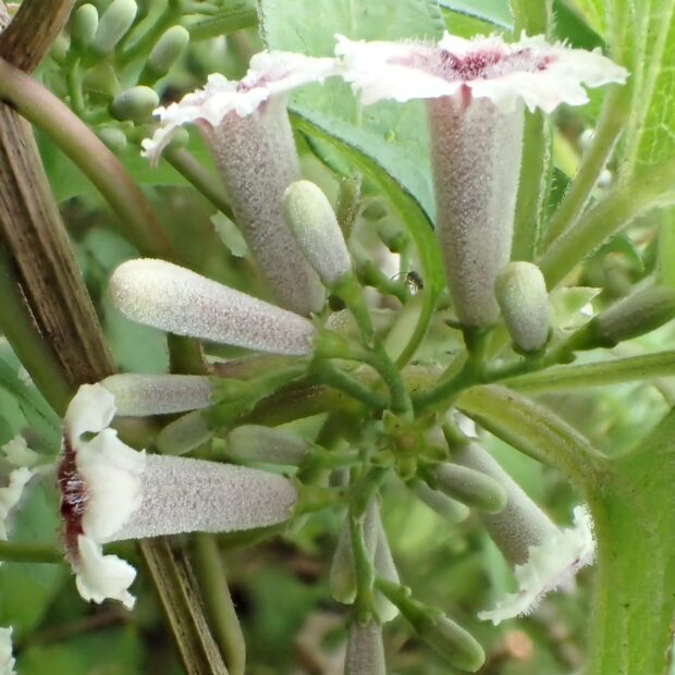 葉や茎などをもむと臭いことから、 屁(ヘ)糞(クソ)葛(カズラ、 つるのこと)の名がつきました。 中心部が赤いのをお灸(ヤイト)に見立ててヤイトバナ、 花がかわいいのでサオトメカズラとも言います。