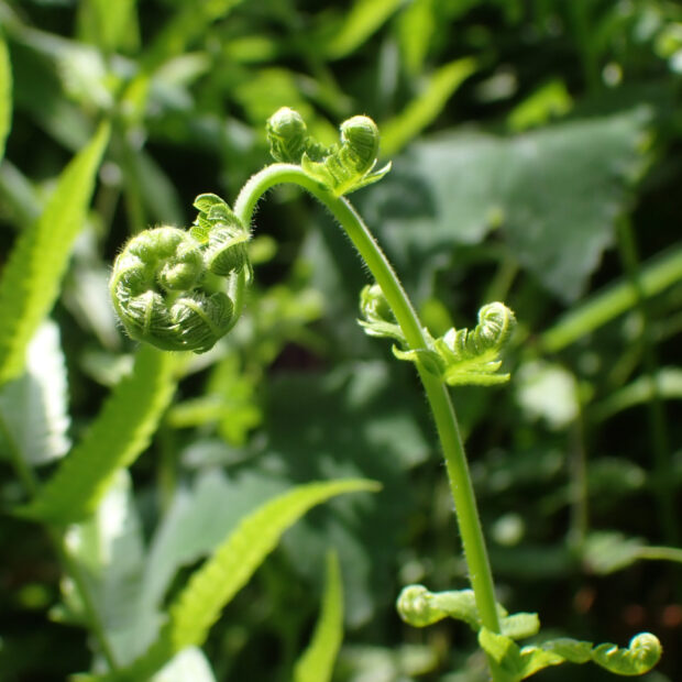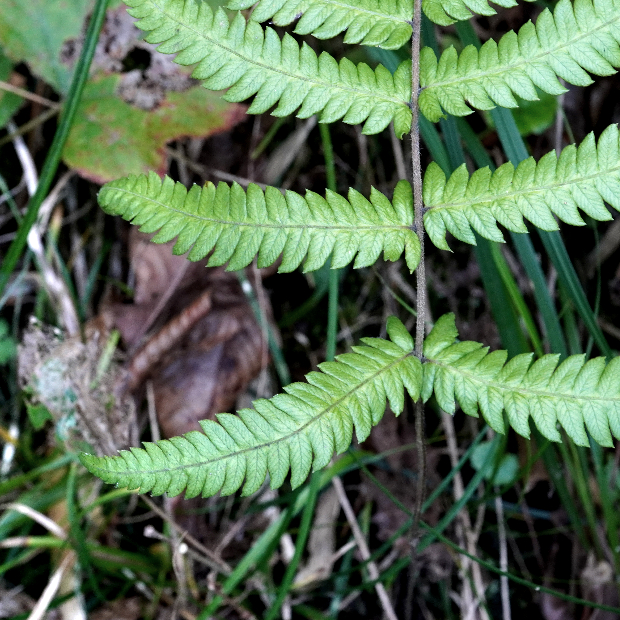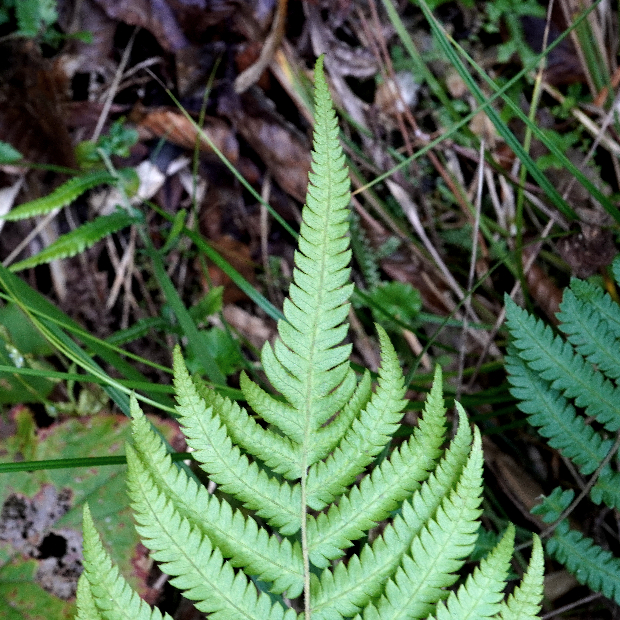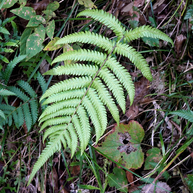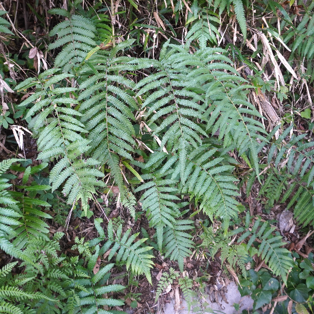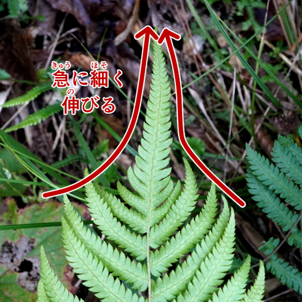 暖かい地域に多い身近なシダで、 道ばたの斜面によく群生します。 葉先が急に細まって、 穂のように長く伸びるのが最大の特徴です。 ただ、 近年では似たイヌケホシダも都市部で見られるようになってきました。