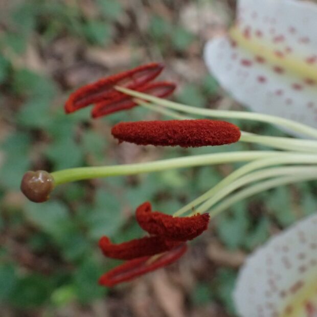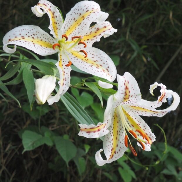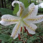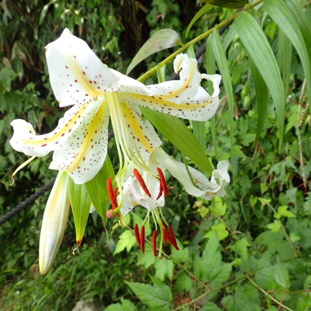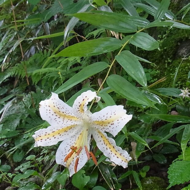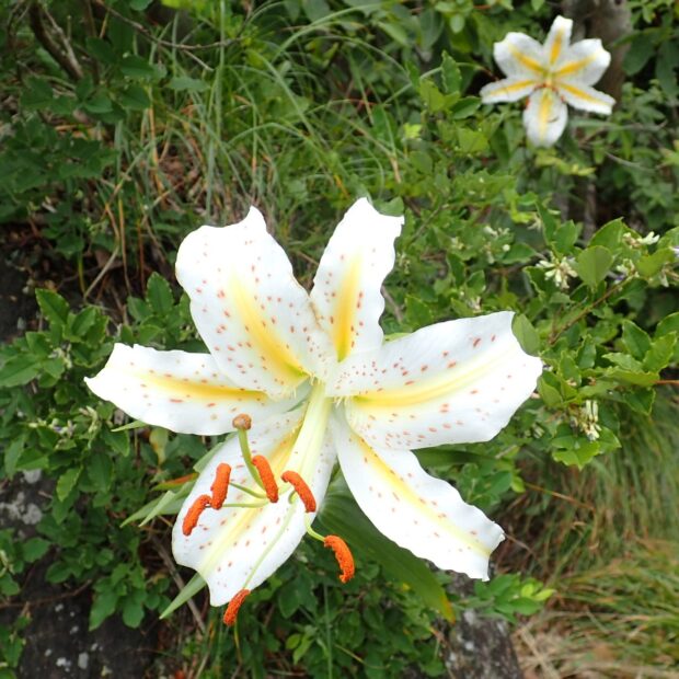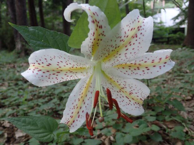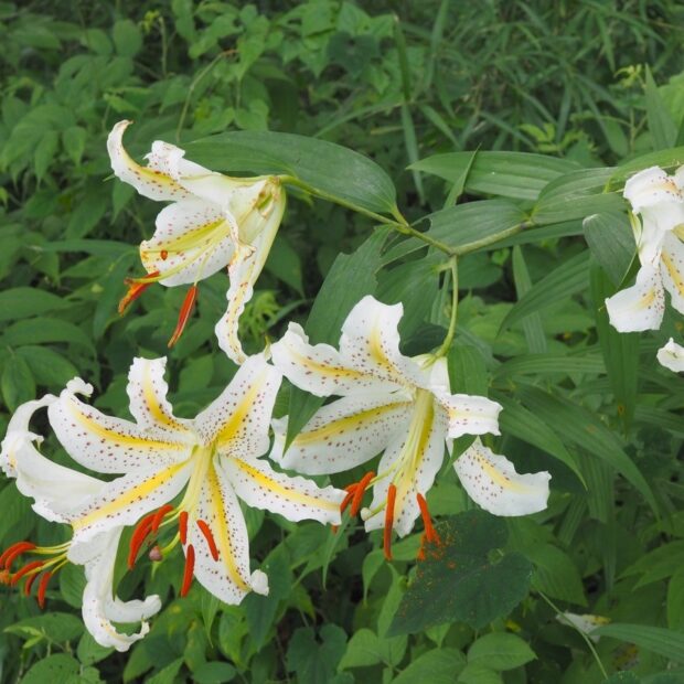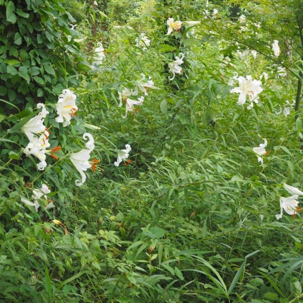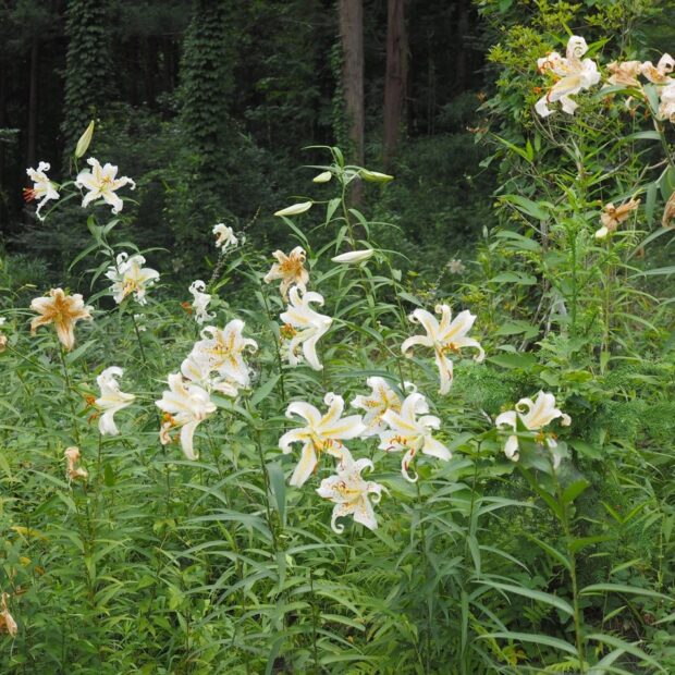 日本特産の大型のユリで、 咲くと強い芳香を放ち、 庭や公園にもよく植えられています。 地下の鱗茎は「ゆり根」として食用にされます。