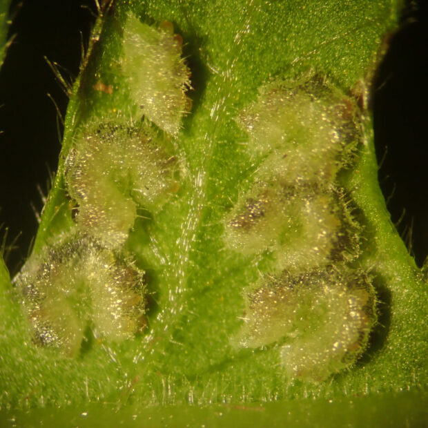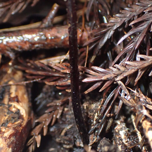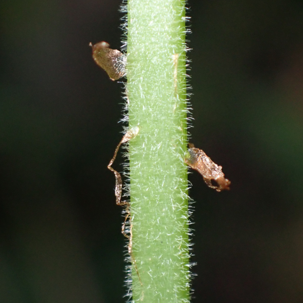 毛や茶色の鱗片が抜け落ちる前に残っている。