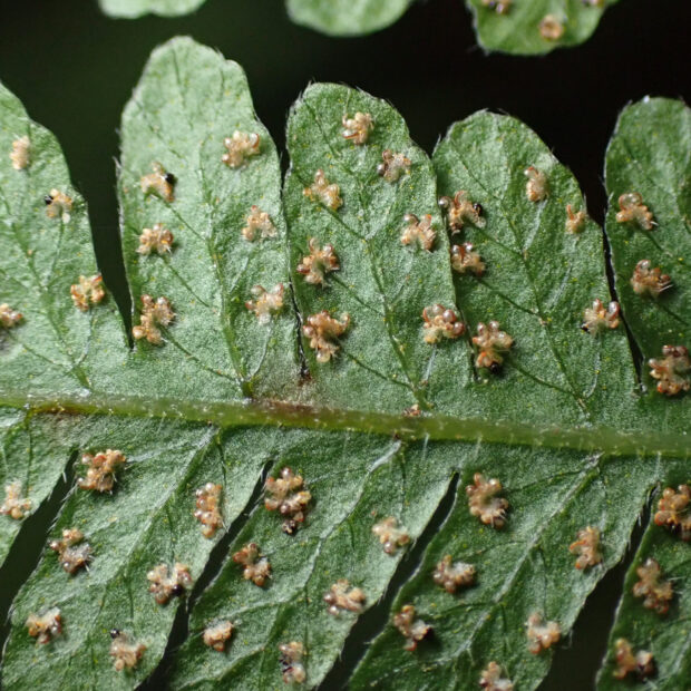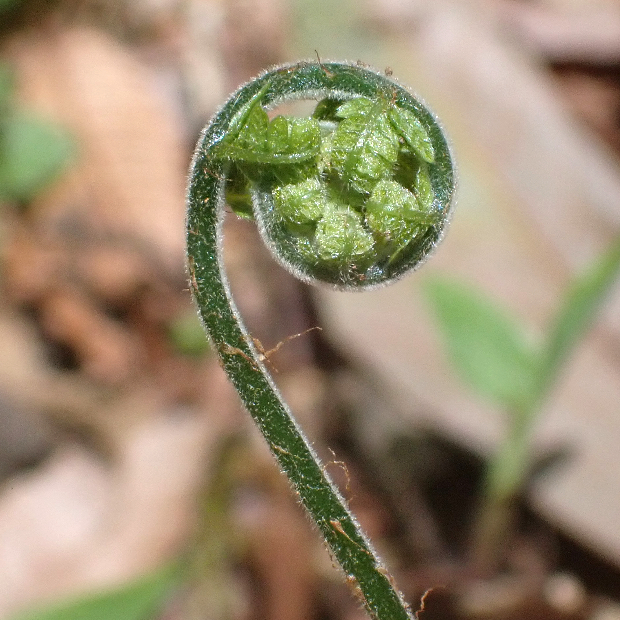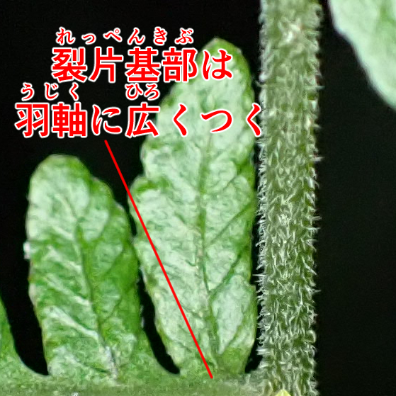 低地の林内でよく見られる小さめのシダ。 葉軸に接する裂片がピョンと飛び出ていることが特徴の1つで、 かわいらしさがあります。 直角近くにつく羽片の感じが梯子(はしご)に見立てられました。