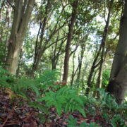 暖かい地域の海岸近くの林内によく群生するシダ。 葉は金属のようにテカテカしていて、 上に1つと下に2つの三方向に細く伸びる葉が特徴的です。 近い仲間とは雑種をよく作ります。
