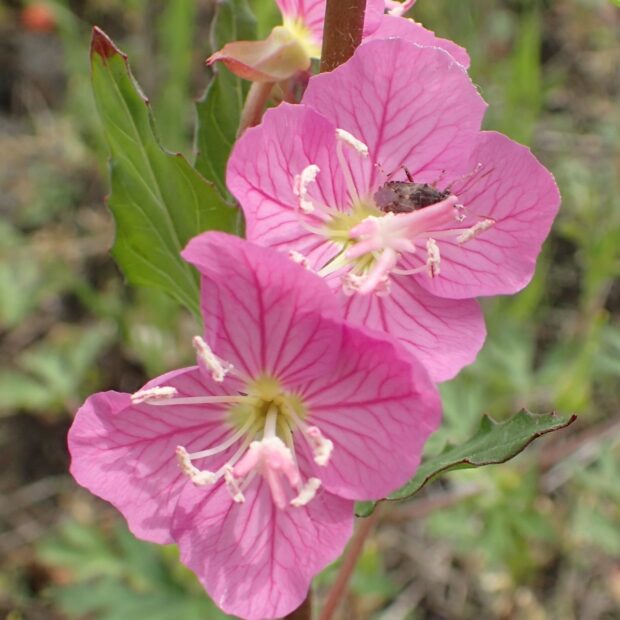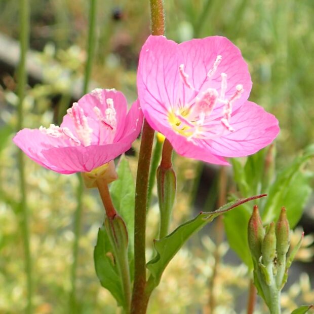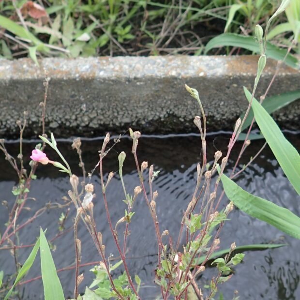 花は淡紅色~紅紫色で、 夕方咲いているのでユウゲショウ(夕化粧)と名がついたようですが、 実際には未明に開花し1~2日間咲いているそうです。