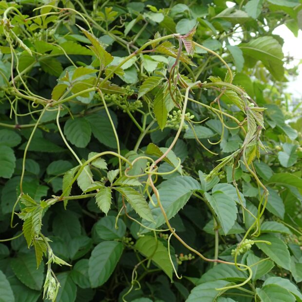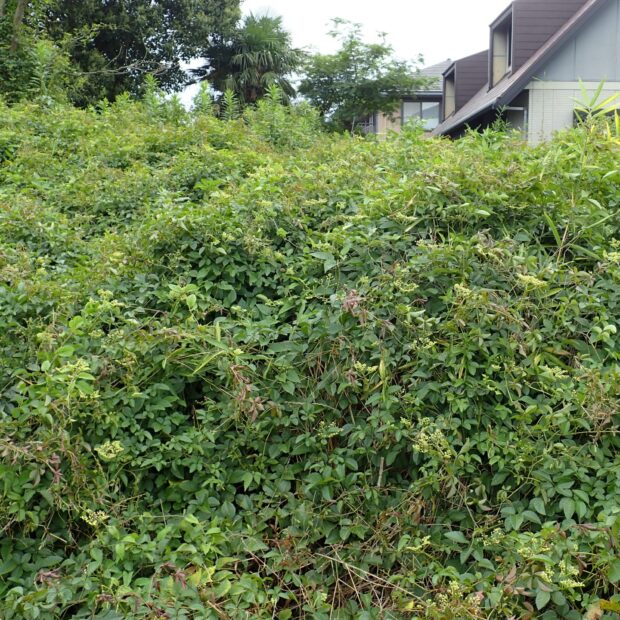 ほかの植物の上にかぶさるようにつるをのばし、 最後には、 やぶまで枯らすことから、 ヤブカラシ(藪枯らし)の名がつきました。 ビンボウカズラ、 ヤブタオシという別名もあります。