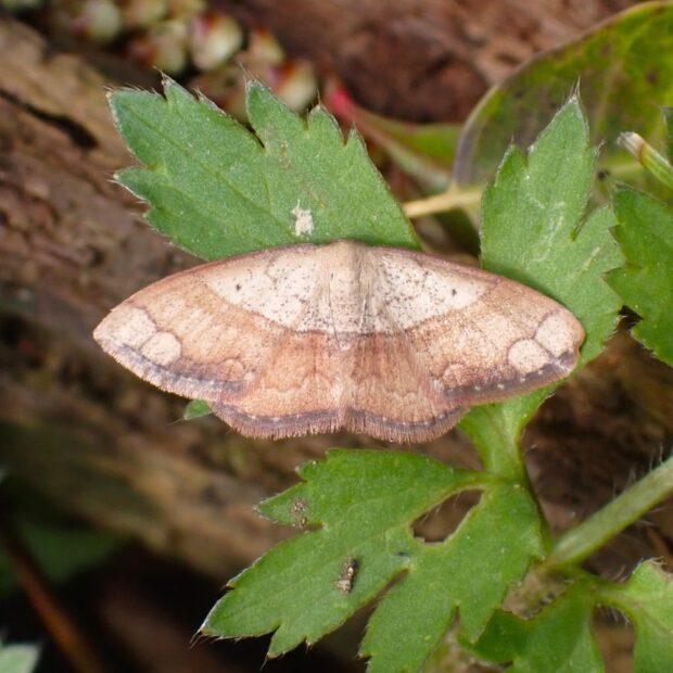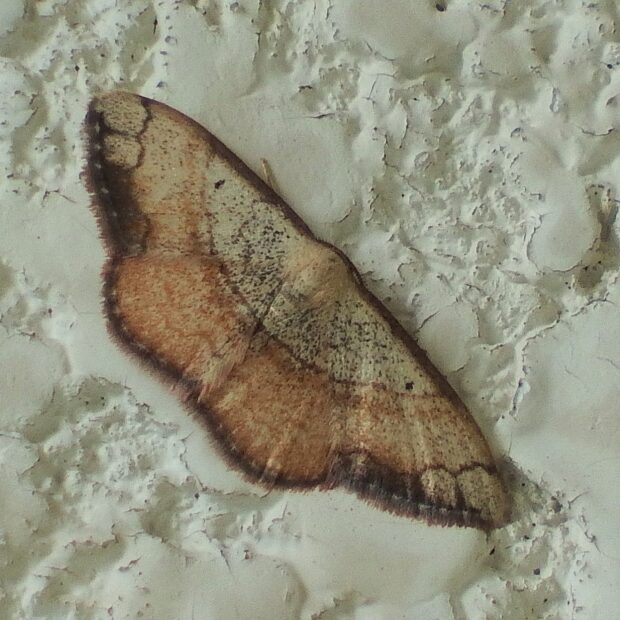 1年に2回、 春と夏に現われるシャクガの仲間。 春型と夏型では模様や色が違っており、 春型の方が一回り大きく、 前後2色に分かれています。 夏型は、 はね全体が赤っぽく小さめです。 市街地の公園などで普通に見られます。