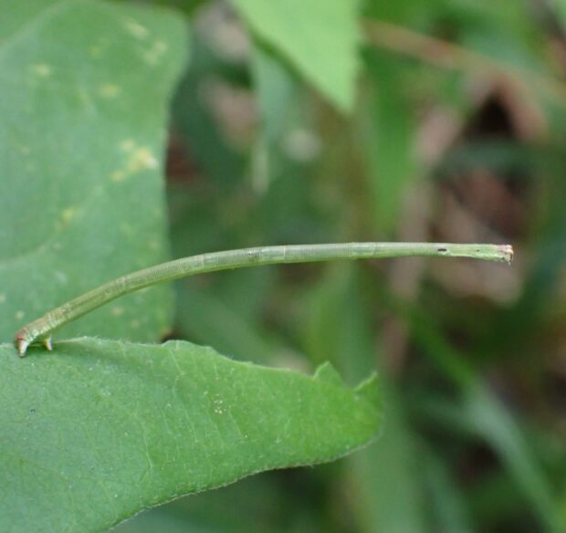 1年に2回、 春と夏に現われるシャクガの仲間。 春型と夏型では模様や色が違っており、 春型の方が一回り大きく、 前後2色に分かれています。 夏型は、 はね全体が赤っぽく小さめです。 市街地の公園などで普通に見られます。