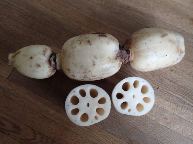 根茎はレンコンとして売られていて、 煮物、 きんぴら、 天ぷらなど様々な料理に使うことができます。 種子(タネ)は、 食材として乾燥したものが蓮子(れんし)の名で中華食材店や通販などで売られており、 薬膳料理やお菓子の材料に使われます。