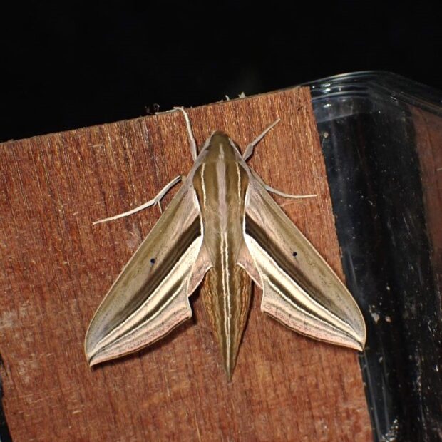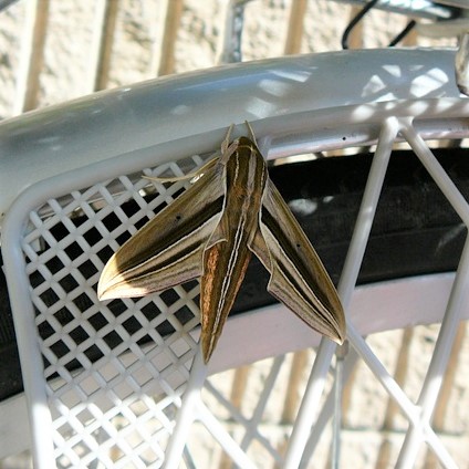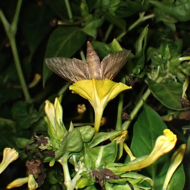 夜、 オシロイバナの花に頭を突っ込み蜜を吸う。