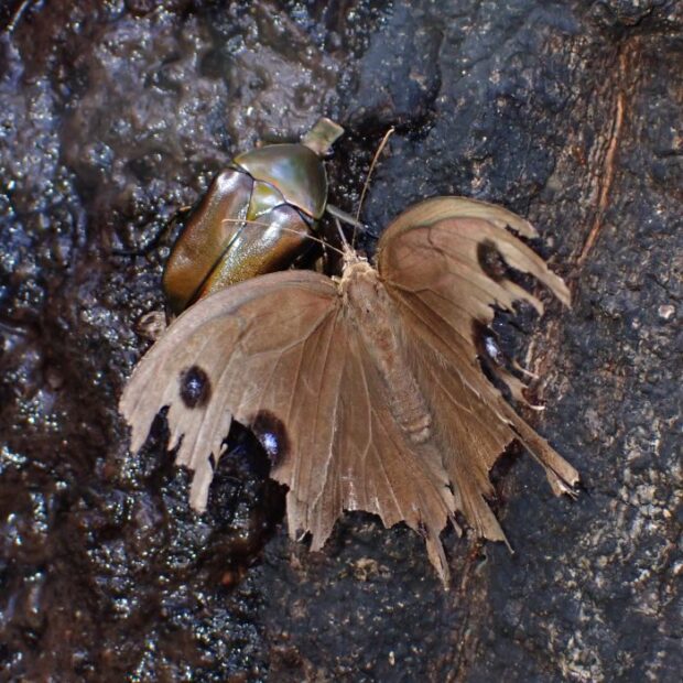 食べ物 : 幼虫はイネ科(ススキ、 スズメノカタビラなど)やカヤツリグサ科植物の葉 成虫は花の蜜、 獣のフン、 樹液、 熟した果実など