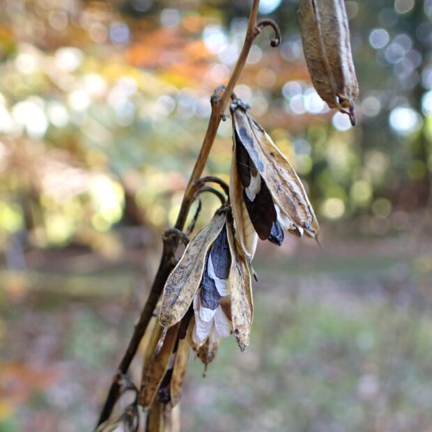 花は淡紫色〜濃紫色で、 内側に濃い色のすじが目立ちます。 朝咲いた花は1日花で、 夕方にはしぼんでしまいます。